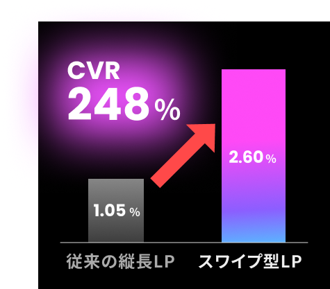 LPやウェブサイトは読み飛ばされがちですが、スワイプ操作で次々と展開されることで読み飛ばしを防ぎ、CVR改善効果が見込まれています。